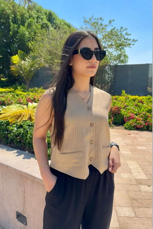 Beige Pinstriped Vest